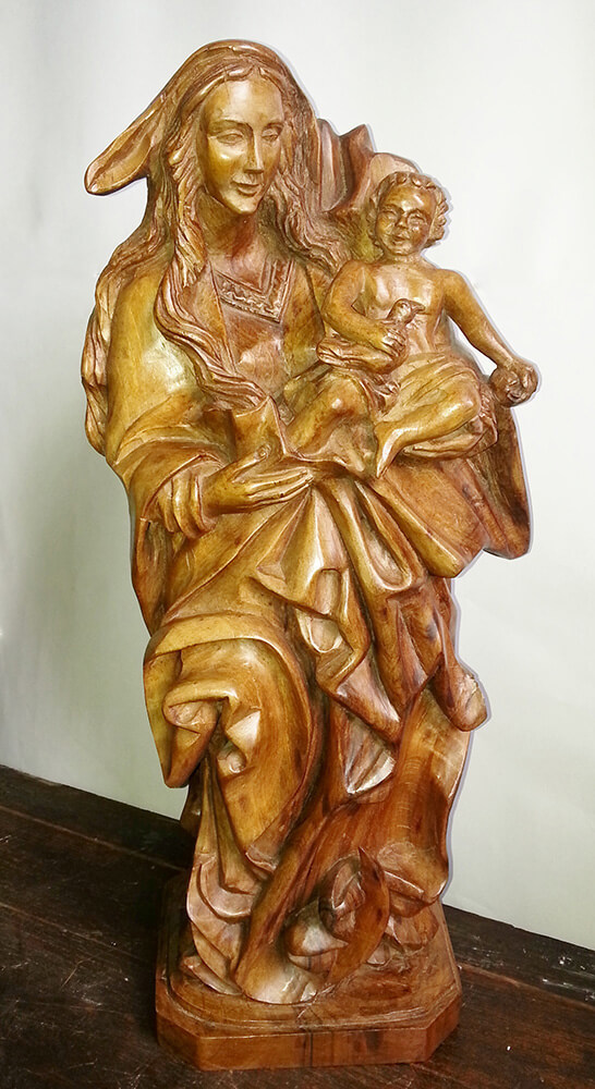 La creación de las esculturas talladas en madera que realiza don Aurelio, son temáticas sacras, figuras de la edad media, estilo gótico, estilo barroco, como también elaboración de animales y cofres.